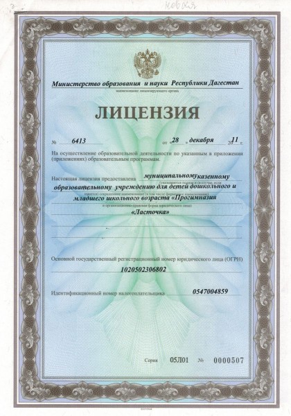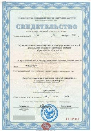 | Полное наименование образовательной организации* | МУНИЦИПАЛЬНОЕ БЮДЖЕТНОЕ ОБРАЗОВАТЕЛЬНОЕ УЧРЕЖДЕНИЕ ДЛЯ ДЕТЕЙ ДОШКОЛЬНОГО И МЛАДШЕГО ШКОЛЬНОГО ВОЗРАСТА "ПРОГИМНАЗИЯ "ЛАСТОЧКА" ГОРОДСКОГО ОКРУГА "ГОРОД КИЗЛЯР" |